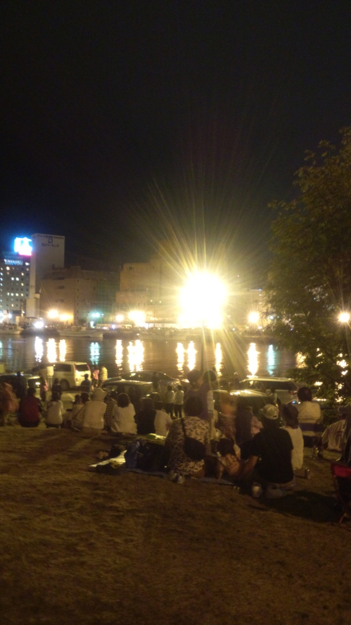 夏の花火大会はあちこちで開催されていますが、この花火大会は道内でも大きな花火大会で、一度は行ってみたいと思っていました。釧路からは遠いところに住んでいて、日帰りでしたのでかなり車の運転が大変でしたが、川辺にすわって眺める花火はいいものでした。