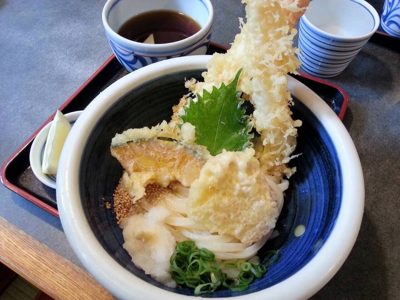とにかく海老の天ぷらが大きい!器からはみ出ていました!うどんもコシがあってとっても美味しかったです。