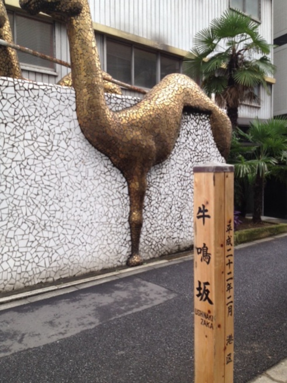 赤坂から青山に抜ける厚木道で、路面が悪く車を引く牛が苦しんだため名付けられたようです。牛も鳴く程つらい坂と言うことでしょうか…名付ける前に舗装すれば良いかと…別名、さいかち坂とも言います。