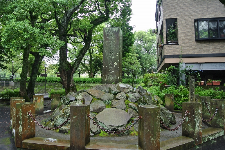近くにある「維新ふるさと館」に向かうため、車を駐車場に停めたときすぐ隣にありました。現在は石碑のみ残っていて、敷地はちーいさな公園(というかスペース?)のように整備されているだけです。同じ場所に西郷従道邸庭園跡庭石というものもオマケのように保存されています。
