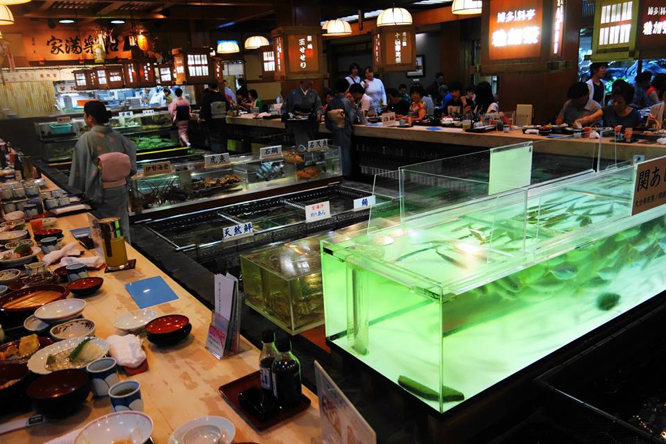 目の前に広がる水槽から,食べたい魚を選んで、調理してもらう事も出来ます。