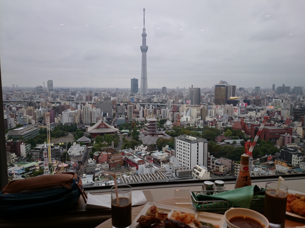 正面にスカイツリーや花やしき、浅草寺などが見え、眺望は最高です。