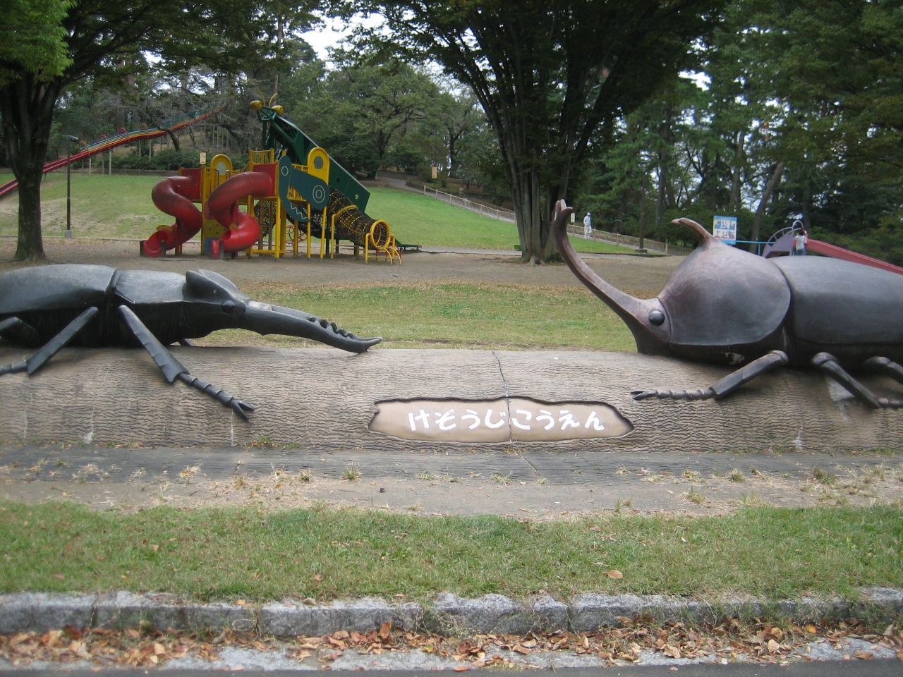 また、公園にはカブトムシのオブジェがあったり、中に入れる鳥小屋、水生植物園があり見所も多いです。