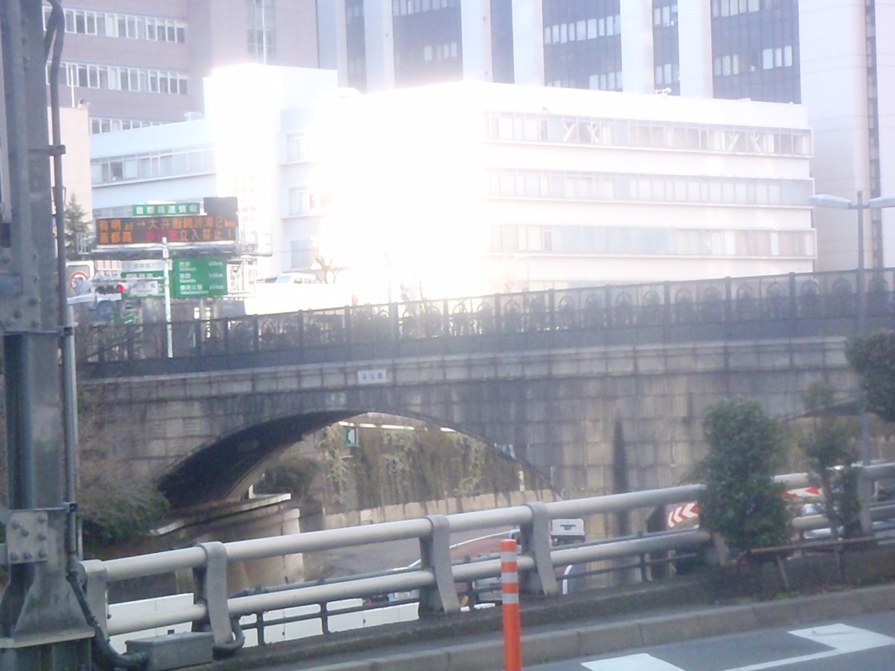首都高速道路都心環状線を走行して銀座付近に近づくと、アーチ型の橋脚を持つ綺麗な欄干の橋が気になっていました。