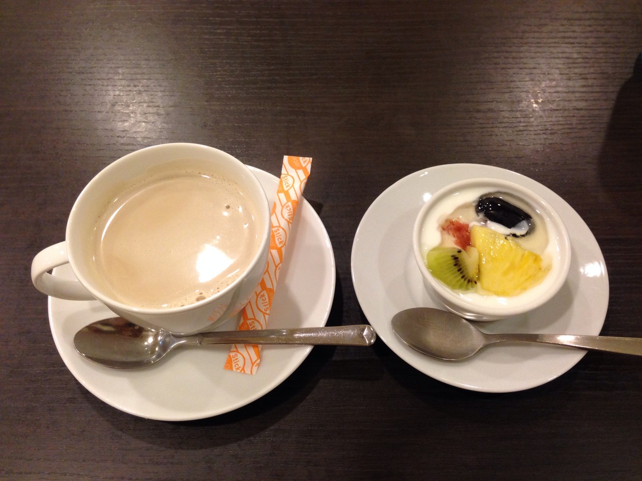 白を基調とした お洒落カフェ風だが 昔ながらの喫茶店をリニューアルしたらしい。