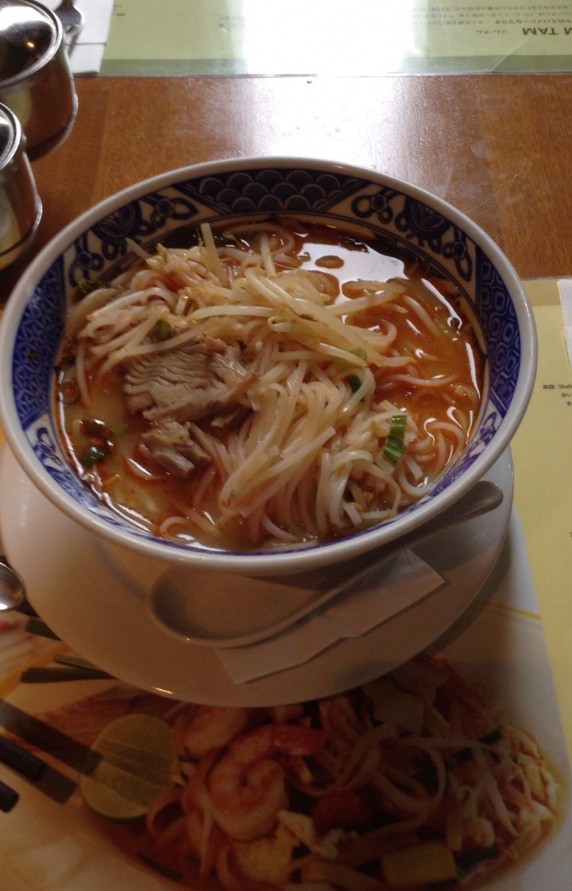 今回はトムヤムラーメンを。砕いたピーナツのトッピングをたくさん載せて食べるのがお気に入り。