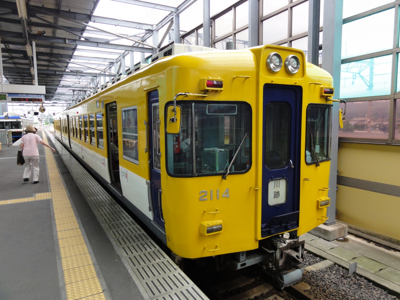 松江市と出雲市を結ぶローカル鉄道です。松江市は松江温泉駅から、出雲市は出雲大社の近くに駅があります。出雲大社の駅は歴史的な建築物です。電車は宍道湖沿いや島根半島の田園地帯を走ります。のんびりした列車で、出雲市に近づくと出雲ドームも車窓から見えました。