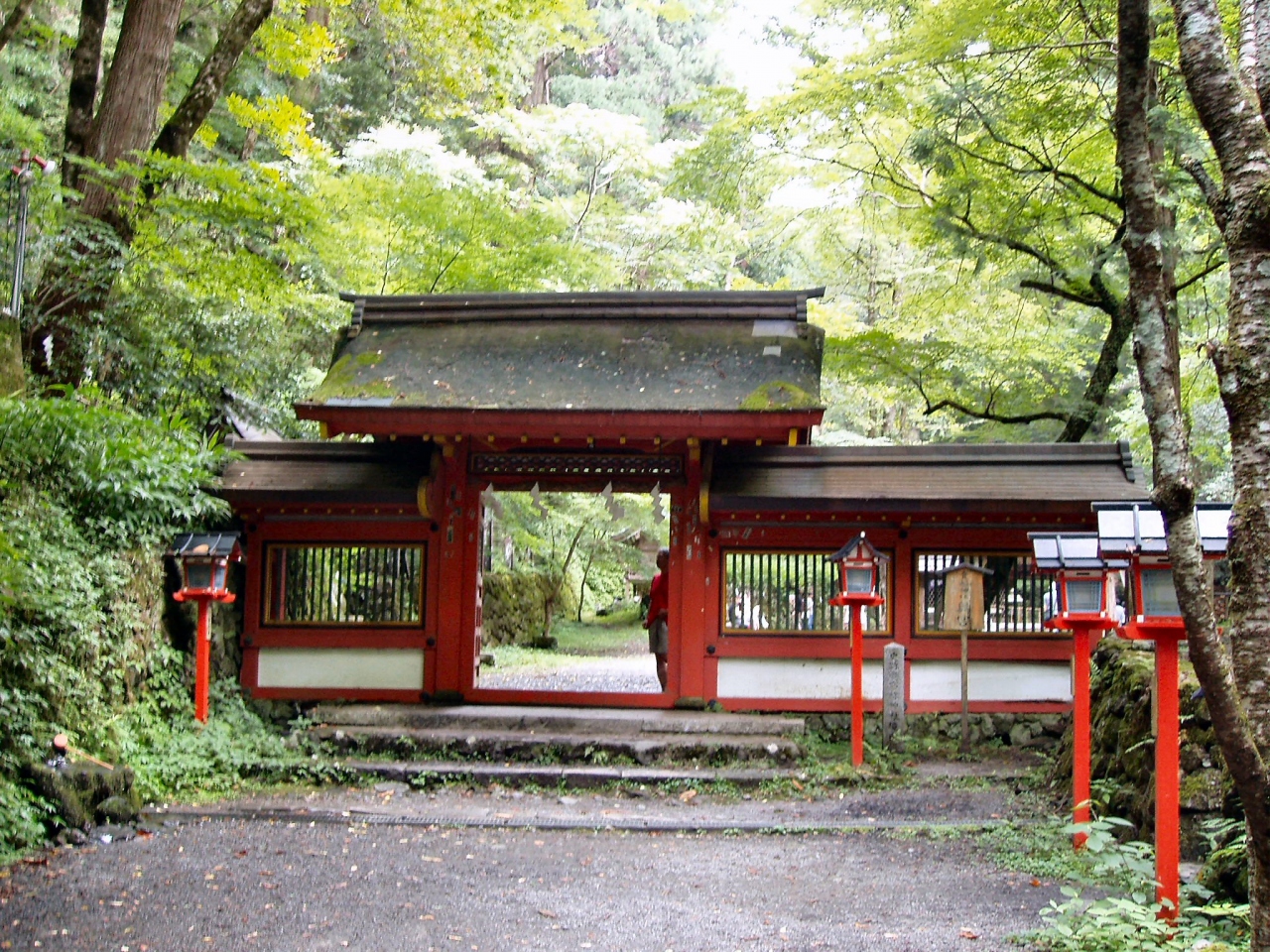 全国に約500社の御分社を持つ、貴船神社の総本宮。ご利益は、心願成就・えんむすび・家内安全など。古くからの慣わしだという三社詣では、本宮、奥宮(おくみや)、結社(ゆいのやしろ)と、三ヶ所の社があります。車が1台程度通行できる道路を登って行くと左側には川床のお店が並んでいます。なお、本宮には水につけると現れる水占いもありました。
