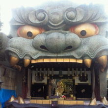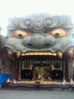 難波駅から10分くらい歩いた少々分かりづらいところにあります。境内に入ってまず目に入るのが巨大な獅子頭です。この獅子舞台は大きな口で勝利を呼び、邪気を飲み勝運を招くとか。一見の価値ありです。