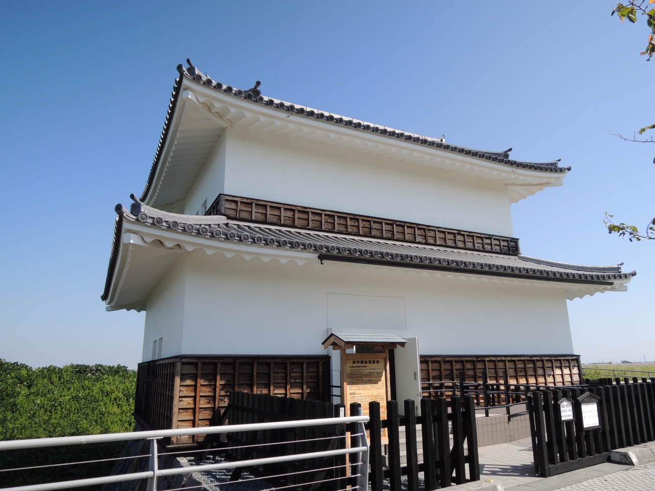 蟠龍櫓は七里の渡しに程近いところにあります。「東海道五十三次」の浮世絵で歌川広重が描いた桑名の絵にこの蟠龍櫓が描かれています。その蟠龍櫓を復元して無料開放しています。内部は小さな展示室になっていて本多忠勝の肖像画や蟠龍をかたどった瓦、蟠龍櫓の描かれた歌川広重の絵の写真などが飾られています。