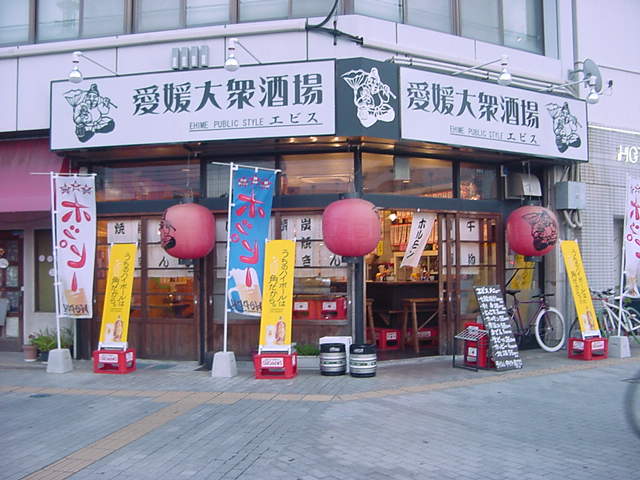 JR松山駅に近いところに立地する飲食店です。カウンターに木の長椅子。まさに大衆的な雰囲気です。せっかく松山に来たのだからと思い、食べるのはジャコ天。これがホッピーと相性がいい。軽く飲むには最適のお店ですね。