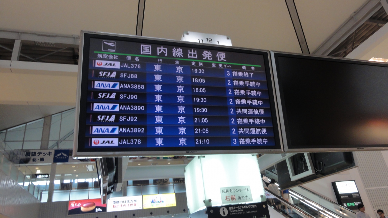 北九州市の南東方向、周防灘に浮かんだ海上空港です。JR小倉駅前からシャトルバスが出ています。苅田地区から橋を渡り、ターミナルに。2階にはお土産物を売る店が並んでいます。こじんまりした空港ですが、大分方面や小倉方面にいくには便利な空港でしょう。