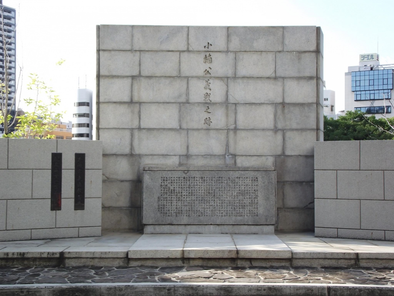 この 「小楠公義戦之跡」 と言う大きく立派な石碑が、京阪本線・天満橋駅 (地下) の地上西側に建ててあります。