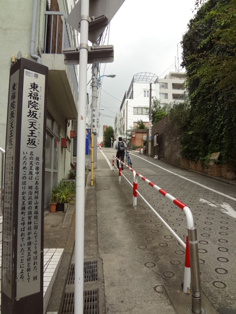 坂の途中にある寺院の名前にちなむ名前のようですが、別名を天王坂と言い、こちらはかつての町名に由来するものです。
