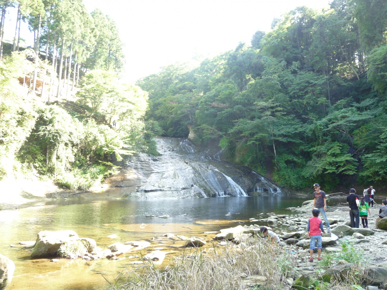 紅葉には早い養老渓谷ですが、澄んだ渓谷の水には小さな魚やエビ、カニが住んでいて子供たちにとっても興味がいっぱいです。また、渓谷のところどころにある滝は水量によって白さや勢いはかわるものの、遊歩道を歩いて滝めぐりするのもなかなか楽しいです。
