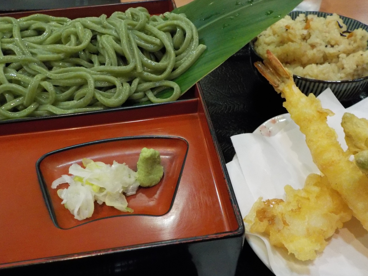 緑色の月桃そばは、ほんわか甘く草もちのような風味。