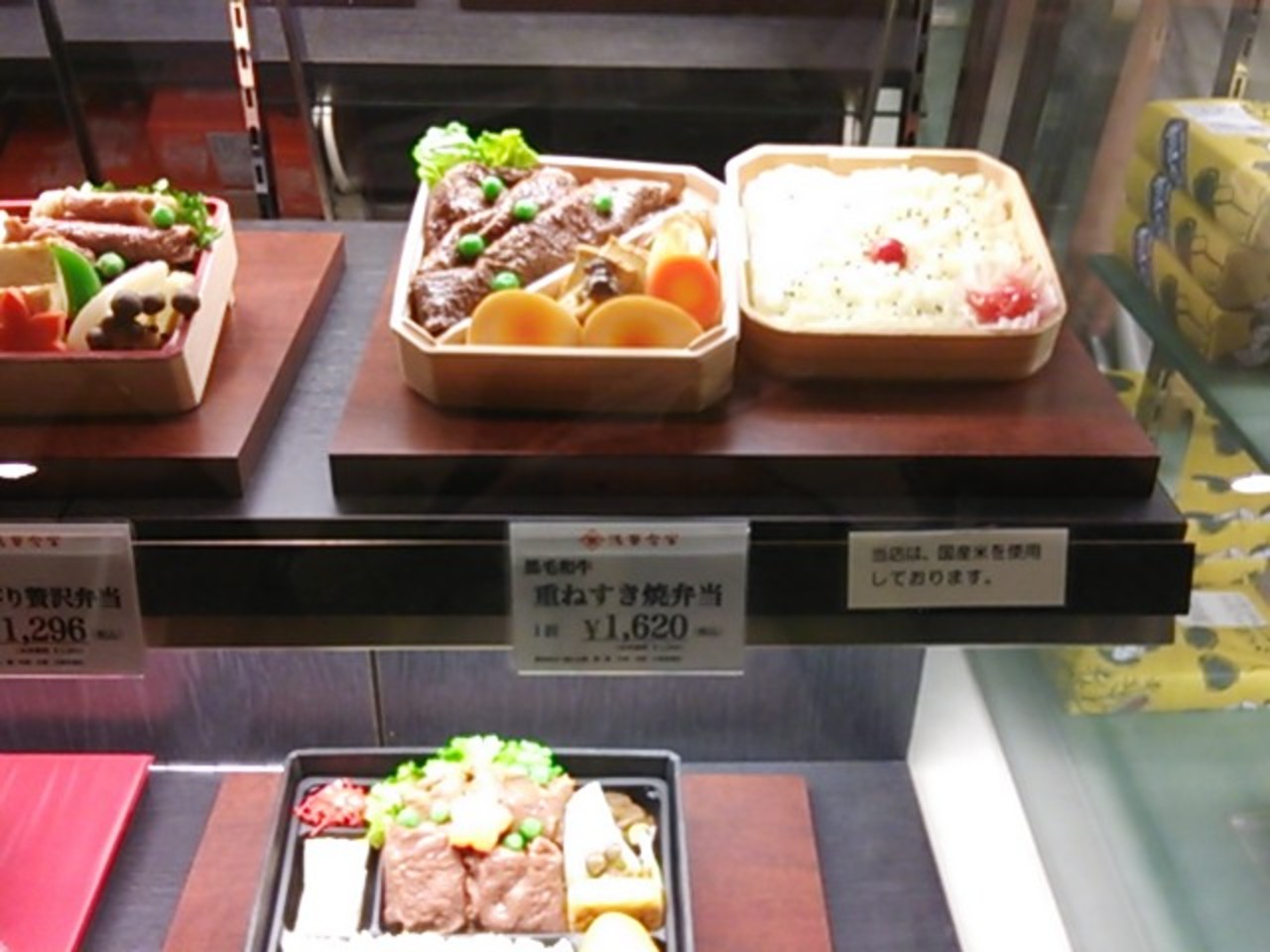 以前新幹線で名古屋に行くときにロースステーキ弁当を購入。お肉にタレを付けて食べるのだ。あの肉肉しい味が忘れられずに伊勢丹で浅草今半をみつける。