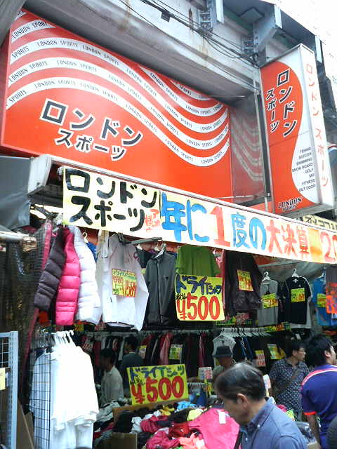 店先のセール品が目を惹くアメ横のスポーツ用品店