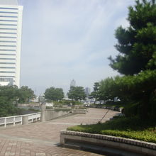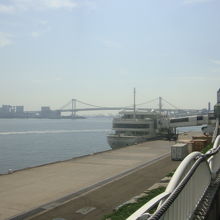 JR浜松町駅から竹芝方面へ10分程度歩くと、臨港広場に突き当ります。伊豆諸島への玄関口で、レストラン船の発着場としても利用されています。特に夜はライトアップされた東京スカイツリーや、グリーンとブルーに輝くアーチ状の勝鬨橋が見え、デートスポットとしても有名な場所です。
