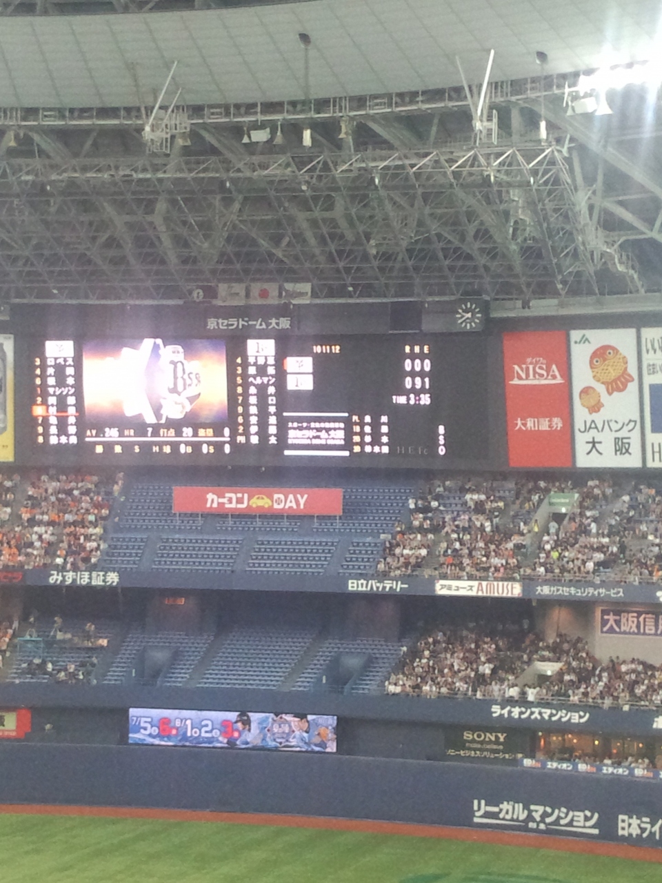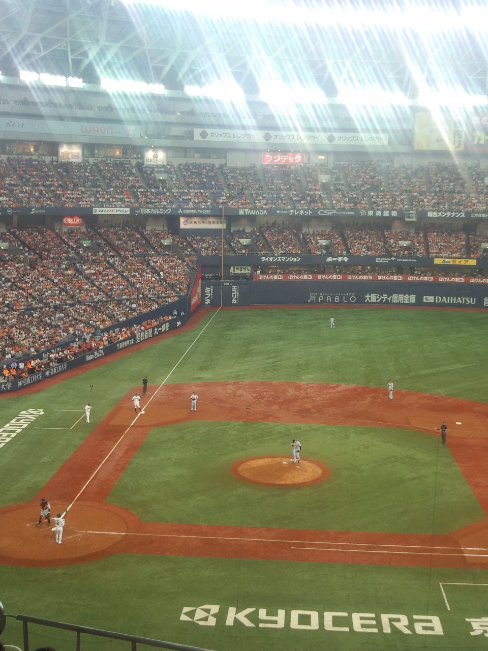 毎年交流戦を楽しみにしていますが、今年は、オリックス−ジャイアンツ戦を観戦しました。試合は、金子投手がもう少しでノーヒットノーラン達成という見ごたえのある試合でした。結果は、延長戦の結果、ジャイアンツが勝利しました。圧倒的にオリックスが圧していたのにこれが野球ですね。