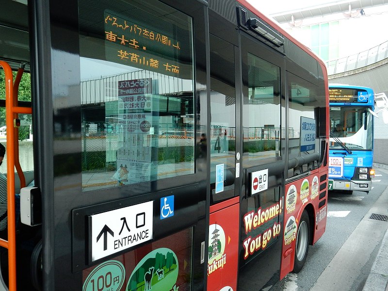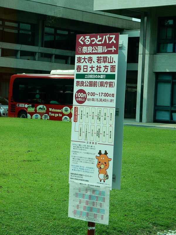 JR奈良駅からは、15分間隔で走っている100円の「ぐるっとバス」に乗って15分位で奈良公園に到着します。