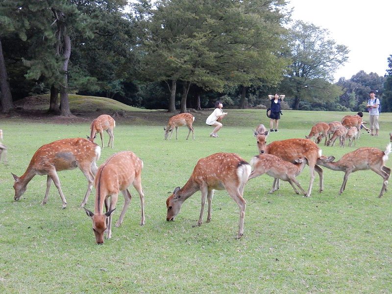 鹿せんべい(150円)を買えばモテモテ間違いなしですが、情熱的な鹿さんの中には後方から猛烈アタックしてくる子もいるので要注意です。