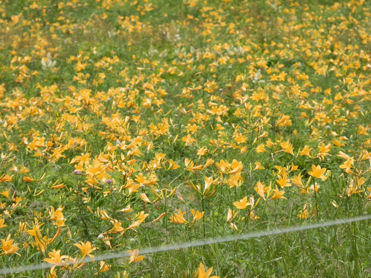 2013年、ペンションを予約一泊で車山高原に来た。一面とはいかなかったが、黄色く可憐なニッコウキスゲが咲いていた。ようやく出合うことが出来た。しかし、四角に囲った電気柵の中だけ咲いていた。何か違和感がある。自然ではない、まるでニッコウキスゲが栽培されているような光景である。四角な箇所が所々にある。