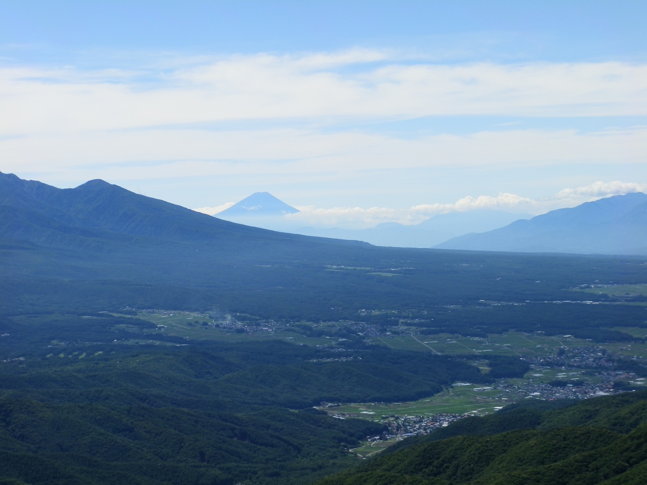 車山の頂上に行き、眺望を楽しんだ。その日は晴れで富士山がよく見えた。南アルプス・北アルプスなど山も美しく、ハッキリ見えた。