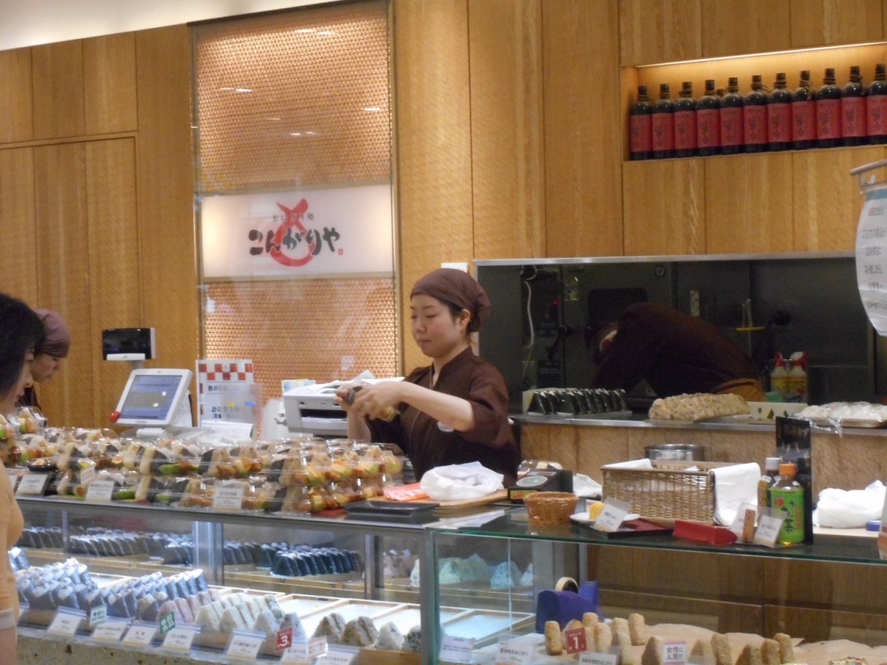 店の奥でおにぎりは作られており、種類も多く、ディスプレイもみやすく食欲をそそります。