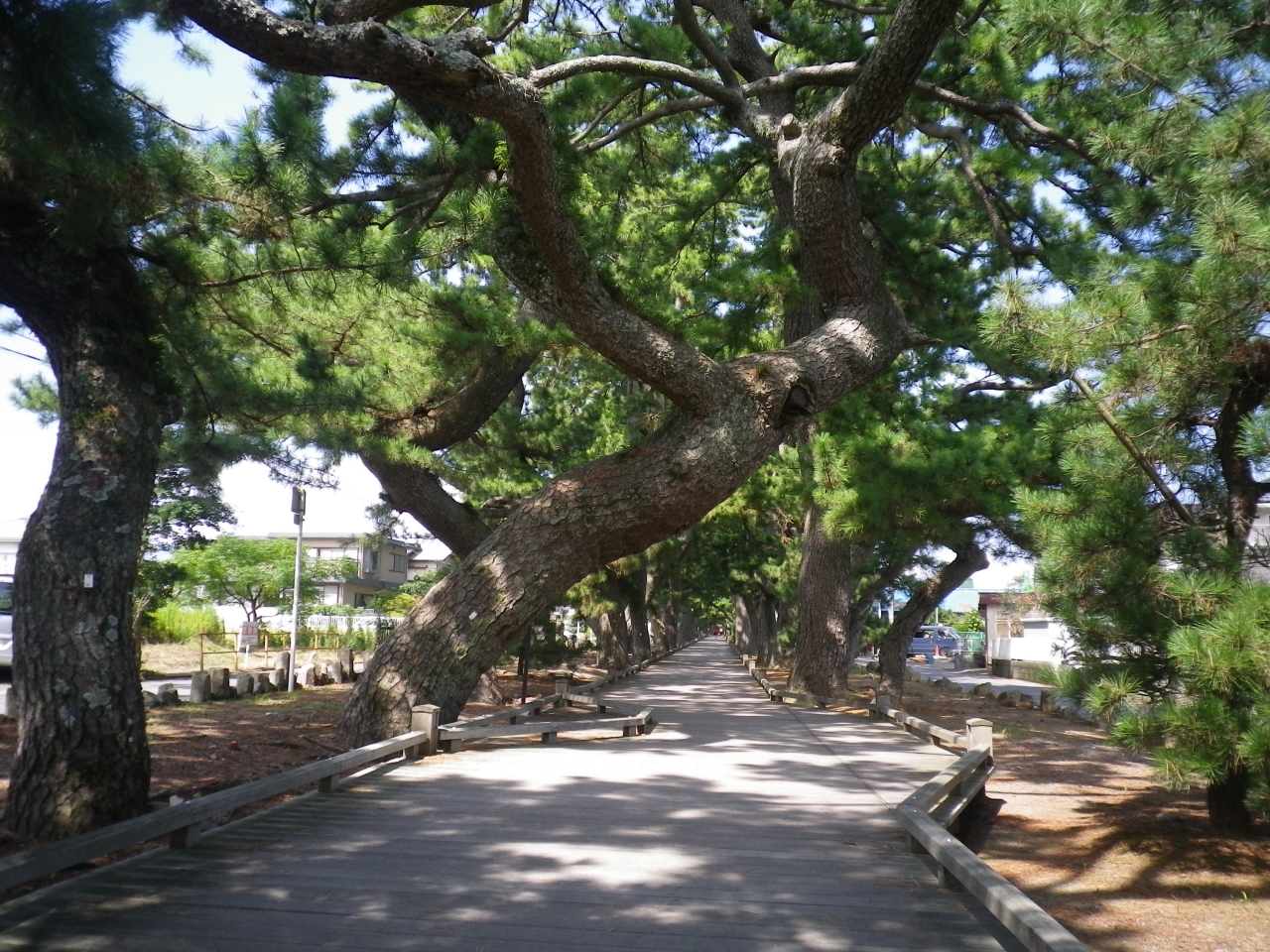 三保松原から神の道と呼ばれる松並木の遊歩道をくぐり抜けたところに御穂神社があります。三保松原の駐車場から6,7分なのでここも一緒に見ていかれると良いと思います。神の道は一本道で延々と続く松並木が見事です。