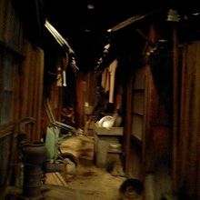 6畳一間で家族が住んでいる所や路地等、人形が座っているので一瞬驚きます。ボタンを押すと説明も流れます。