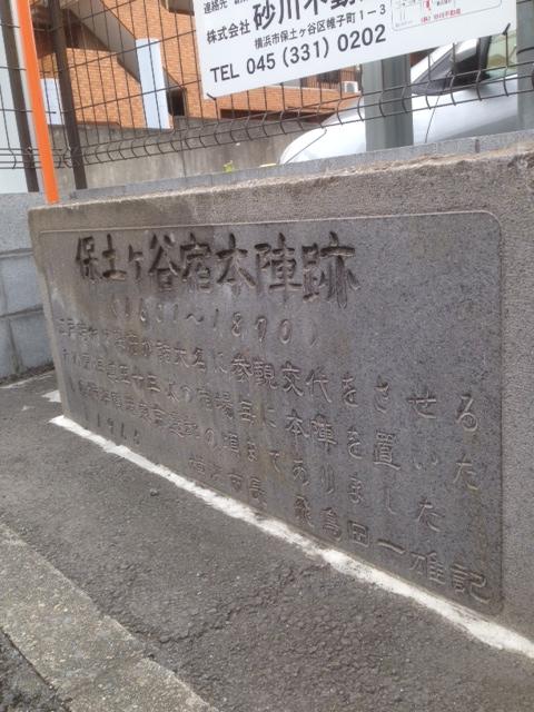 ここは、保土ヶ谷宿の本陣跡です。江戸時代、参勤交代を義務付けられていた大名たちは、宿場に設置された本陣に宿泊しました。本陣が混雑していたときは、近くにある脇本陣に宿泊したそうです。写真の脇本陣跡は、本陣の近くにありました。