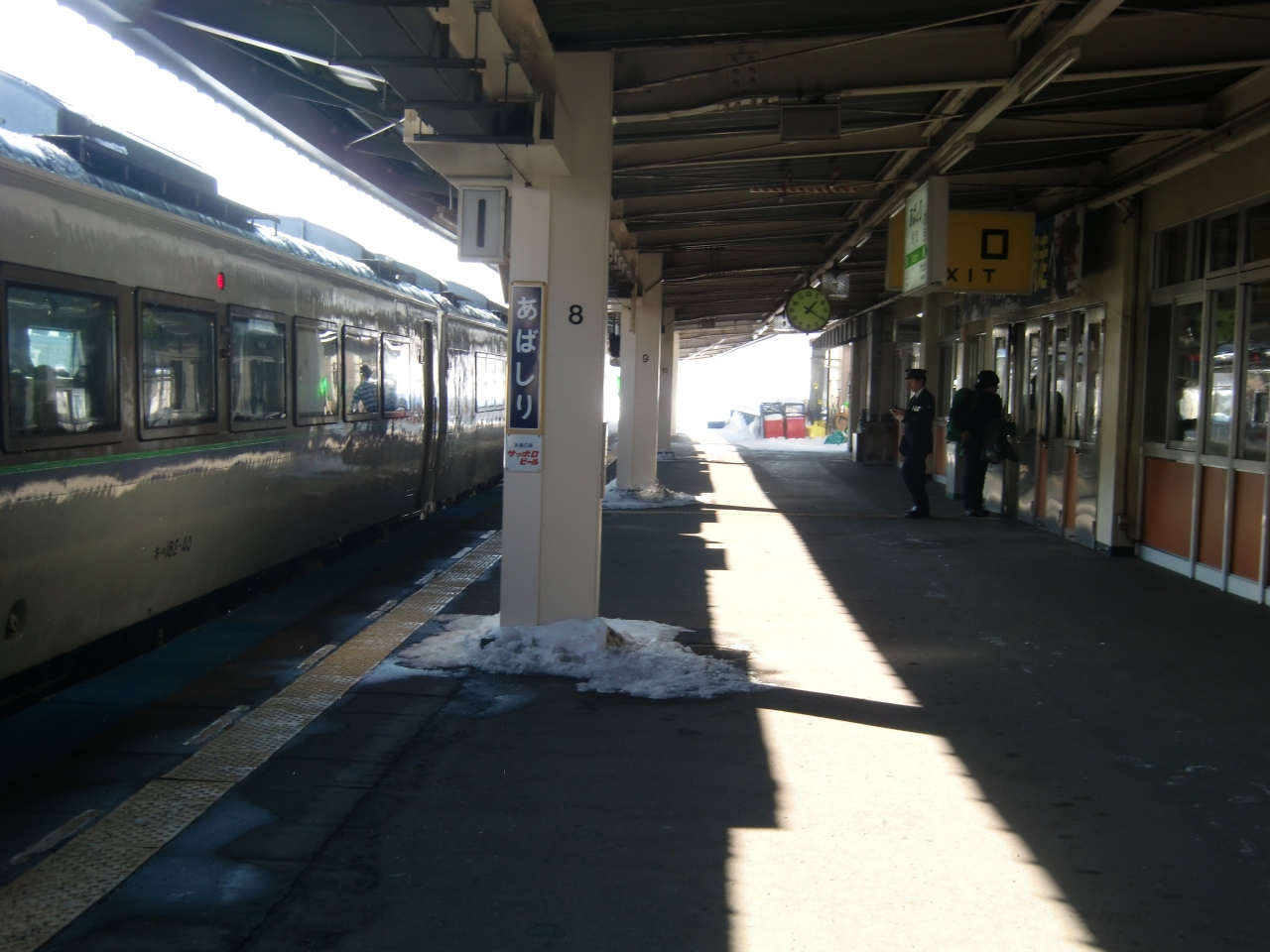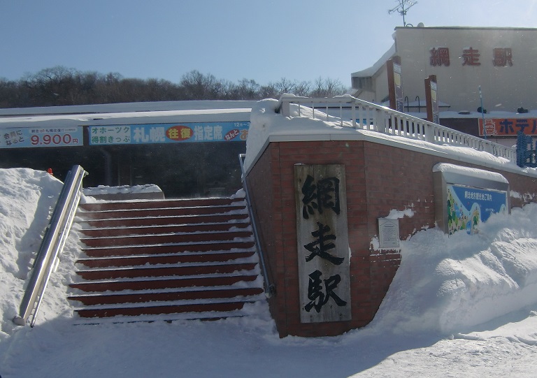 流氷観光の拠点として利用しました。札幌から電車で片道なんと5時間30分。往復11時間の超長旅でした。道中は、仲間たちと酒をちびちびやりながら過ごしましたが、長かったです。それでも流氷の素晴らしさは何とも言えず苦労が報われた思いです。