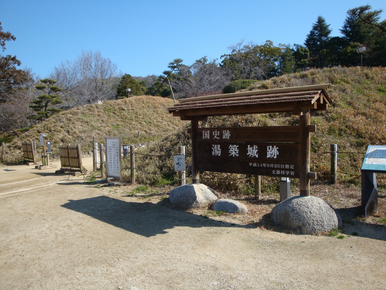 レンタカーで行きました。有料駐車場が有ります。とても広い公園でグランドや資料館、お濠も有ります。公園の中心部には小高い丘が有り展望台も有ります。道後温泉駅からも徒歩圏です。とても広い公園です。是非行ってください。