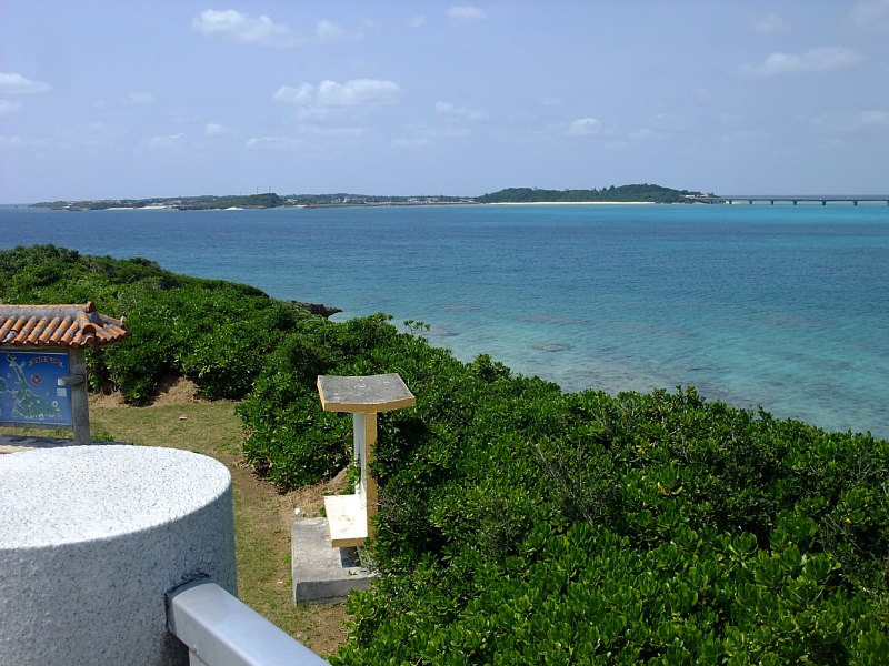 東平安名崎は岬なのに対し、西平安名岬は池間島と池間大橋を見ることが眺めることができ、池間島との間に横たわる海の青さは特筆もの。太陽が登り切ってしまうと逆光気味になってしまうため、午前比較的早い時間か、午後に三時過ぎにくると、美しい海が見れます。