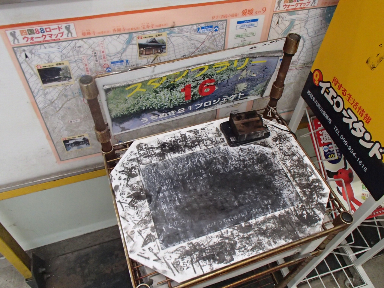 伊予西条駅 (いよさいじょうえき)では、スタンプラリーに参加していて、スタンプ台の上にユニークなデザインのスタンプ画が有って、スタンプ好きの方には、おすすめです。ぜひ、伊予西条駅に行った際には、一度、利用してみてください。