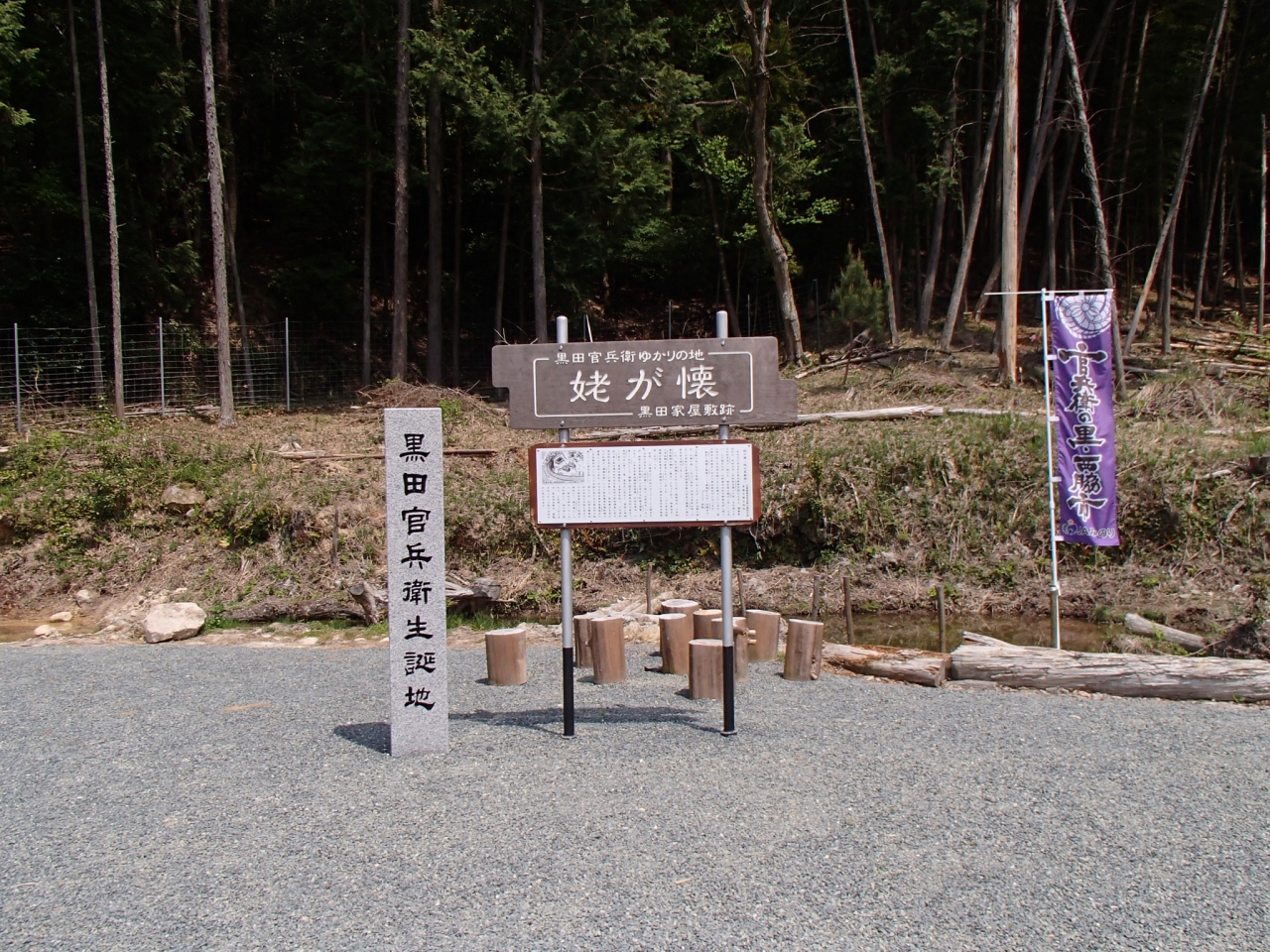姥が懐 (黒田官兵衛生誕地)では、大河ドラマで取り上げられたので、大きな石碑が有り、訪問した事による記念撮影場所として、おすすめです。歴史的な事実も記載されているプレートも有りますので、勉強してみてください。ぜひ、一度、行ってみてください。