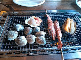 和歌山マリーナシティの中にある海床では、まず席を確保した後に黒潮市場のお店で海産物やお肉などの食材を買い、そのままBBQを楽しめるレストランです。海沿いの席は眺めも良く、満足できるお店です。駐車場はすぐに一杯になるようで、お昼過ぎに食べ終わって出ると、何台も並んでいました。