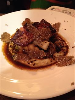 俺のイタリアン YAESU では、限定食ですが、活アワビとフォアグラのポワレです。しかもトリュフソースで仕上げています。赤ワインとも相性がよく、少しずつ食べてみてください。ぜひ、一度、食べにいってみてください。