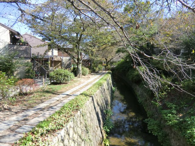 琵琶湖疎水のメイン水路から蹴上で分岐して、南禅寺の水路閣を通って北に流れる「琵琶湖疎水分線」に沿った小道です。南禅寺から銀閣寺のあたりまで約5kmあり、普通に歩くと90分~2時間くらいです。