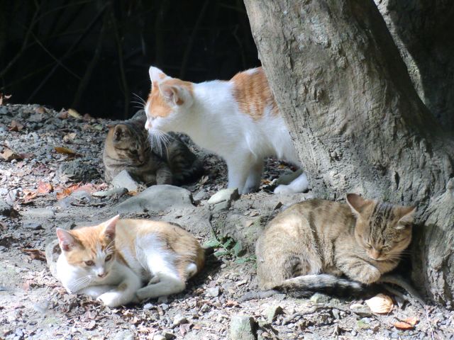 川と道の間に柵のないところもあるので落ちないように注意しましょう。途中、猫の多い一帯があります。