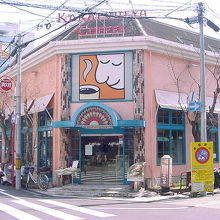 大阪府の東部、阪急京都線の中核駅である高槻市駅の駅前商店街にあるコーヒー店。京都を中心に、町中でも郊外でも見ることのできるチェーン店ですが、この店舗は店構えもかなり大きく目立っています。気軽に立ち寄ることができる立地です。