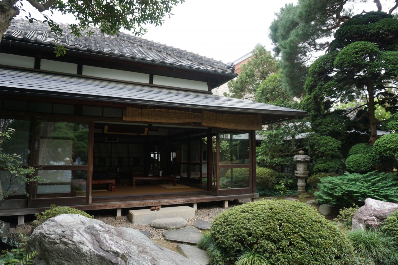 奥に回ると、市内随一の日本庭園と表座敷。表座敷には上がって、セルフサービスでお茶をいただきます。銀行の事務室もその先。庭には洋館もあって、それぞれがきちんと保存されているし、見所は豊富です。