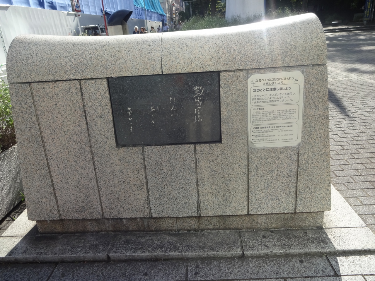 数寄屋橋公園の入り口そばにさりげなく立っている碑が、ここにむかし「数寄屋橋」があった場所と教えてくれる。