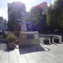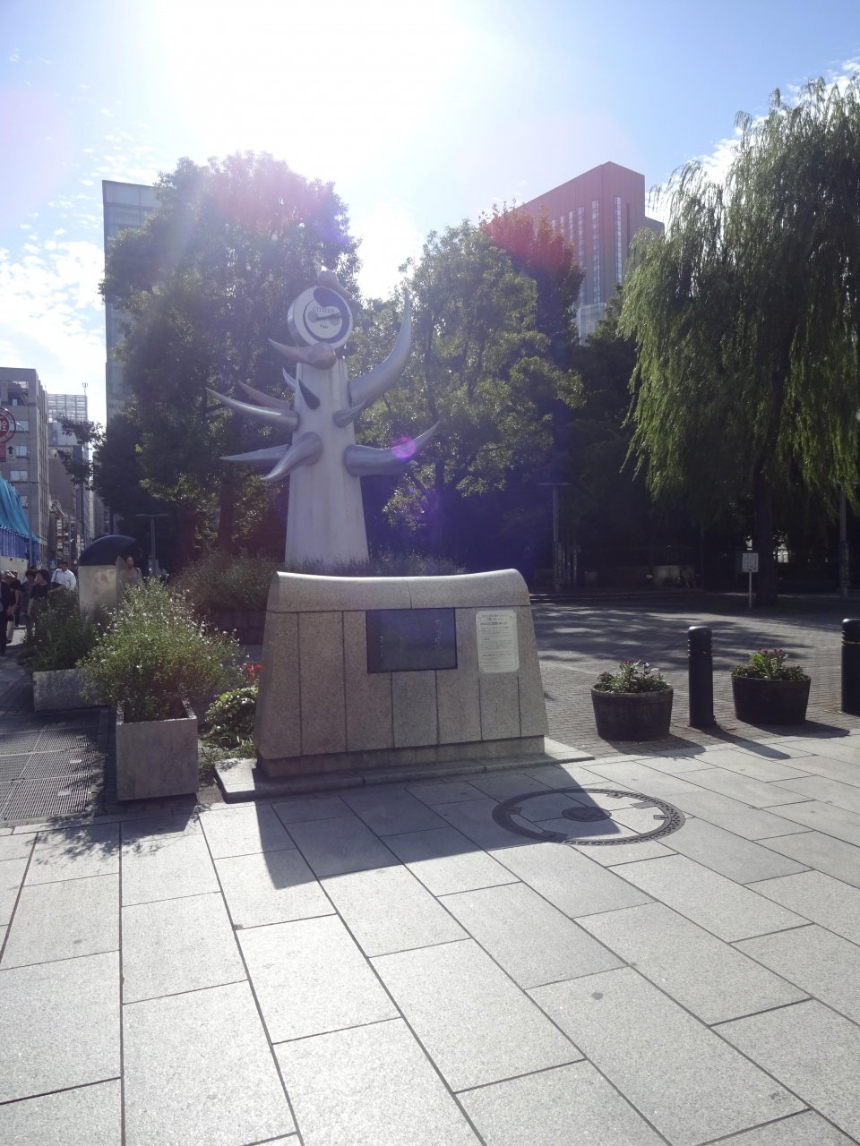 少し離れて写真を撮ろうとすると、背景に岡本太郎のオブジェが写り、そちらの方が人の目を惹く。