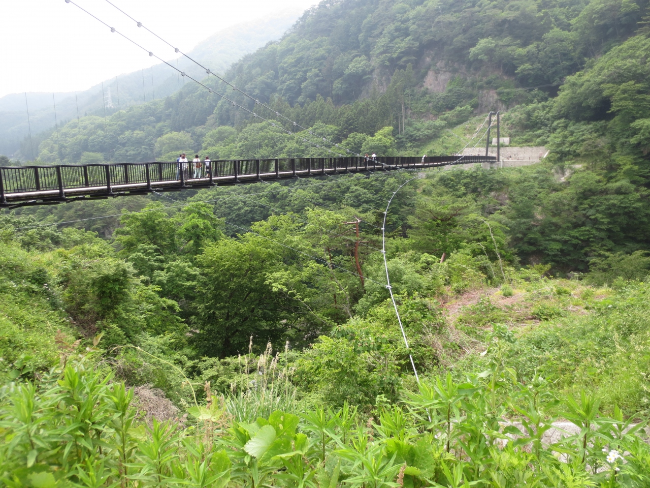新しい吊り橋で、中央部にはバルコニーがあって、鬼怒川のライン下りを見ることができました。