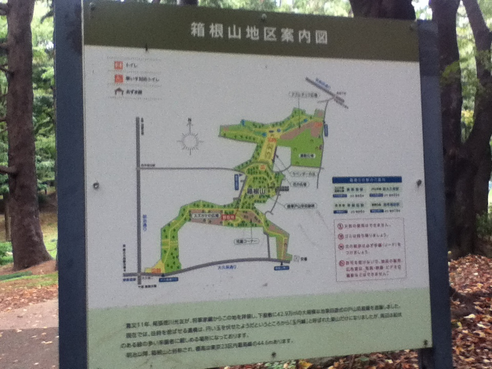 大久保公園は、早稲田理工学部近くのエリアと、大久保通りの東、箱根山周辺のエリアの2つに分かれている。前者には、昔、ゴーカートの施設があった。今は、区立スポーツセンターや散歩ルートがあって、近くのマンション等の家族ずれで平日でも結構賑やかである。一方、後者は、あまり人工的構造物がなく、高い木々が所々に立ち、また小高い箱根山があるなど自然を活かした公園である。異なる特徴をもつ2つのエリアだが、それぞれ楽しく遊んだり散策ができることから、訪問することをお勧めする。