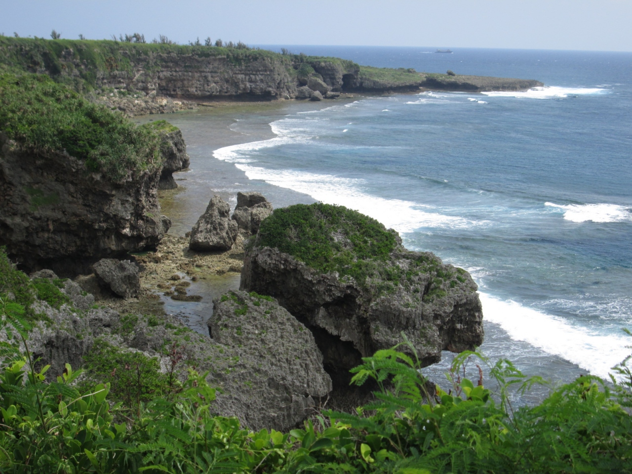 細い小路(本当に通れるの?)を道に迷いながらも、喜屋武岬に到着。高台の小さな広場には、小さな駐車場・トイレ・(無人)休憩所・灯台があります。眼下には岬の絶景を鑑賞することがきます。後から知ったのですが、沖縄戦で、逃げ場を失った島民の方々が、ここから身を投じたとのこと。・・・平和の塔が沖縄の太陽に輝いていました。