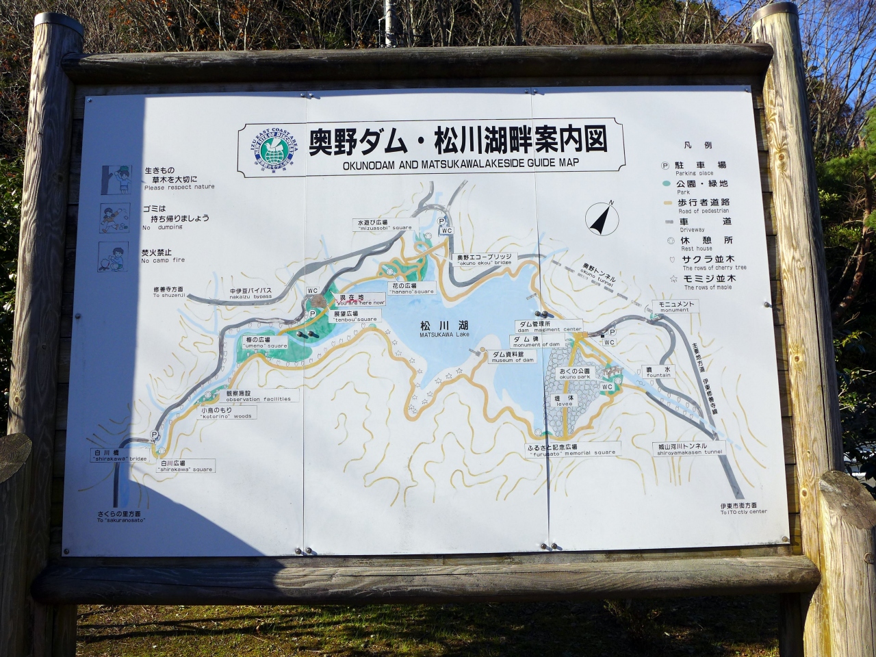 大川上流の伊東市郊外に奥野ダムにせき止められた松川湖があります。