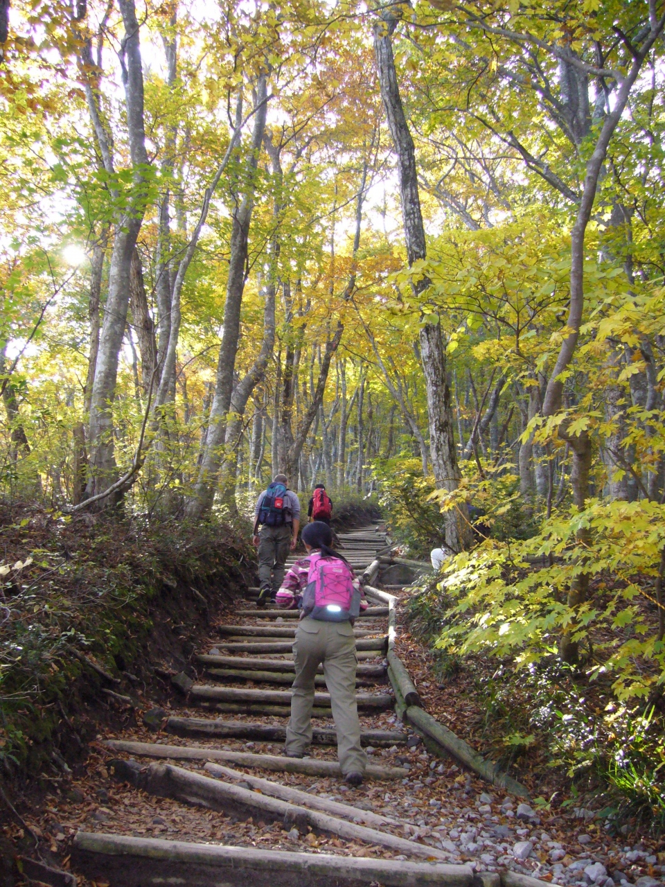 登山道はまさにブナの森林浴コースで、ブナの林が見事です。一合目ごとに標識があり、気を入れなおすこともできます。